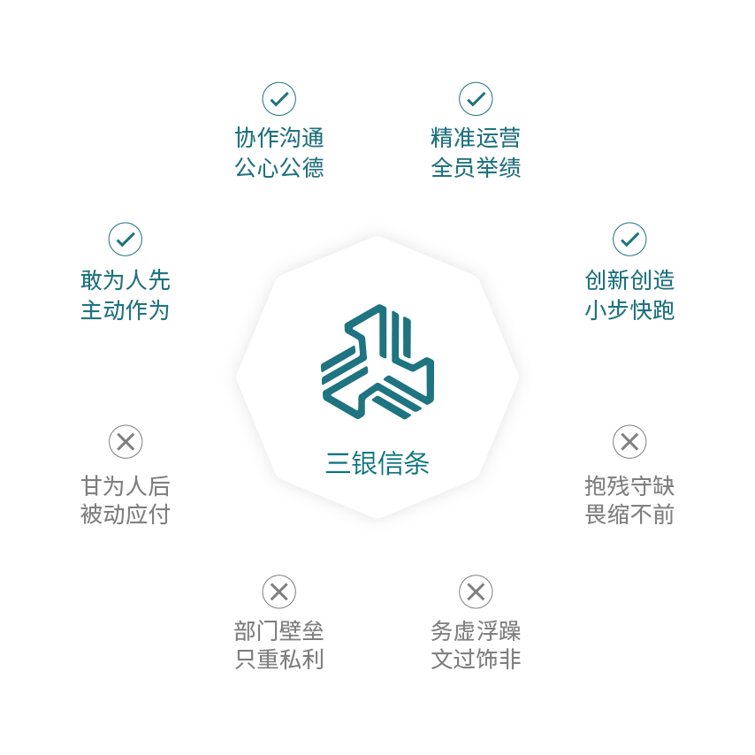 扁平畅通、凝心聚力;狼性拼抢、协作分享;